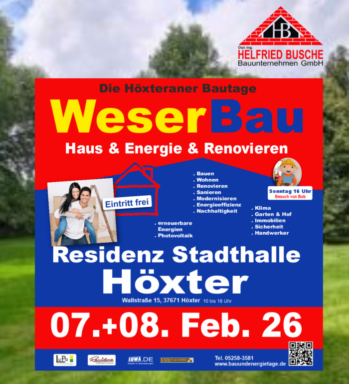 An diesem Wochenende finden Sie uns auf der Baumesse in der Stadthalle in Höxter. Eine gute Gelegenheit sich rund ums Thema Bauen und Energie zu informieren. Wir freuen uns auf Ihren Besuch.